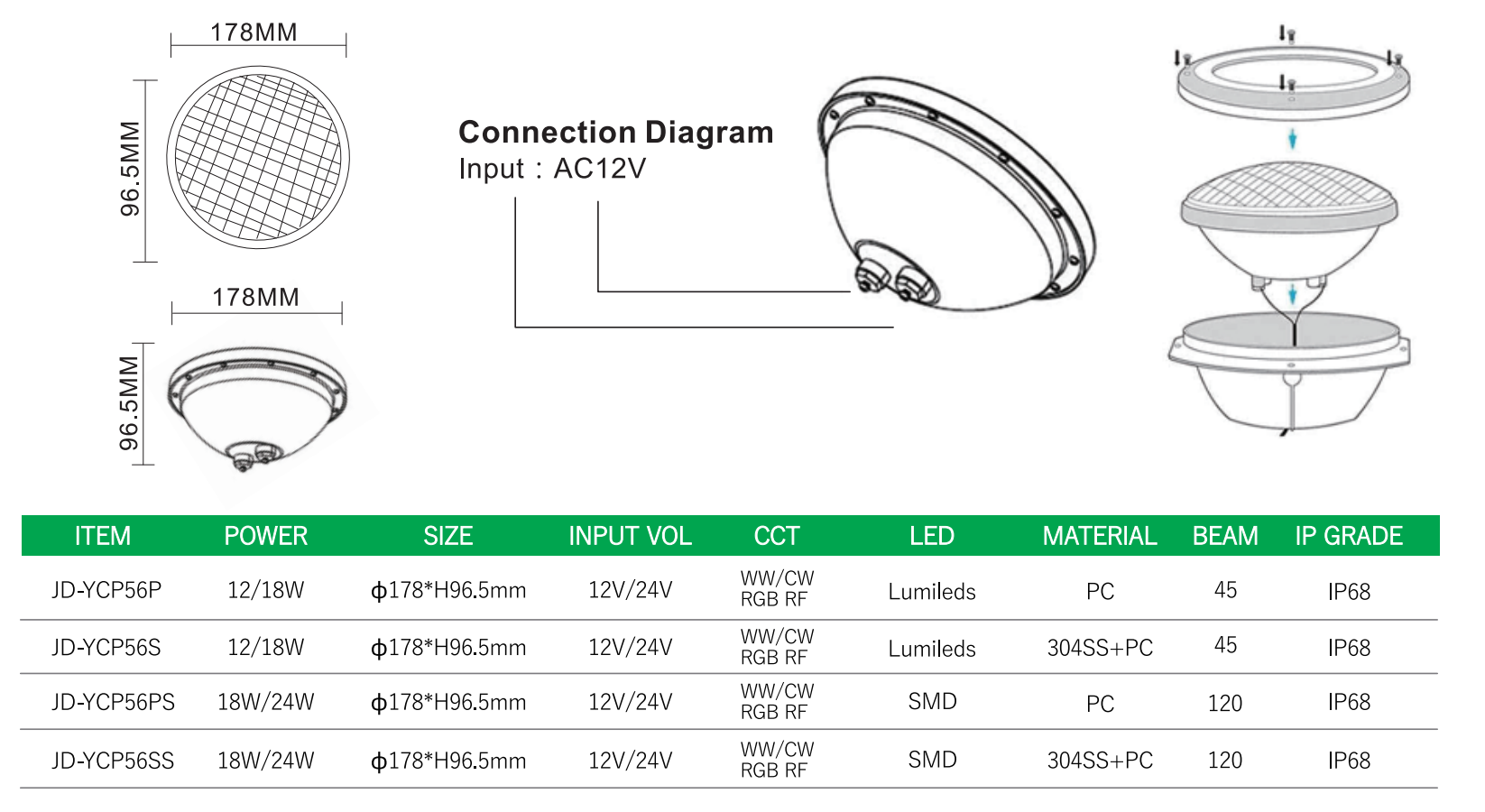 Best AC/DC 12-24V Pool Light Replacement RGB Par56 LED Swimming Pool Light IP68 Durable PC Lamp Body Manufactured